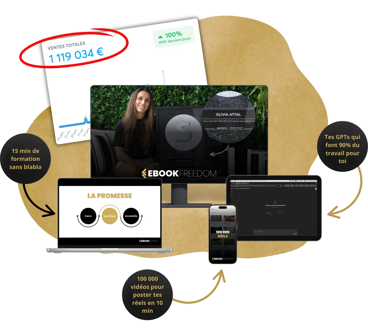 En résumé, avec Ebook Freedom, il te suffit de suivre les étapes, utiliser les GPTs, et copier / coller le résultat pour obtenir un ebook concret, en ligne, prêt à générer des ventes.